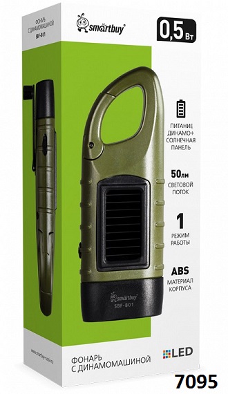 | 7095 | Фонарь SmartBuy SBF-801 0.5W 3LED солнечная панель + динамо машина, аккумулятор 40mAh, тёмно-зелёный | 550.00 руб. | | |