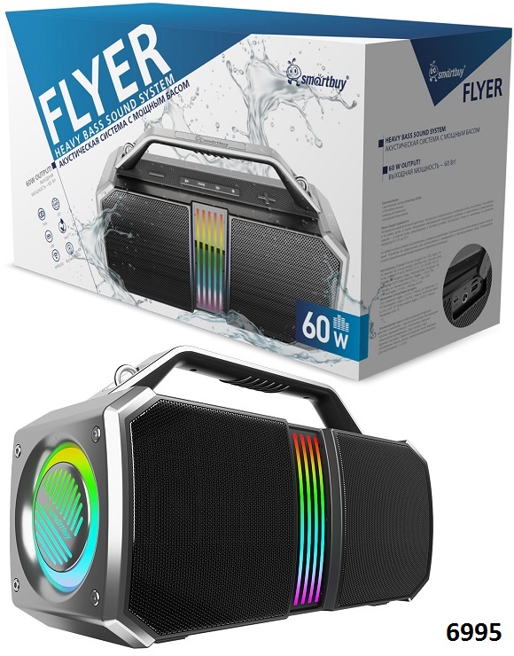 | 6995 | Мини-система SmartBuy SBS-5930 FLYER 60W FM/AUX/BT5.3/MP3 Серая, Li-ion аккум 2,6Ач/7,4V, поддержка USB/microSD, 12-20000Гц, RGB-подсветка, защита IPX | 4 790.00 руб. | | |
