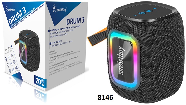 | 8146 | Мини-система SmartBuy SBS-5710 20W DRUM 3 Чёрная BT5.0/USB/MicroSD/FM с подсветкой | 1 230.00 руб. | | |