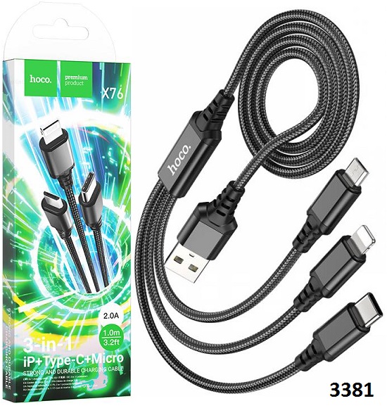 | 3381 | Кабель HOCO X76 USB(AM) -> Type-C/micro/Lightning 1м 2A, силикон Чёрный  3-в-1 (31) | 125.00 руб. |  |  |