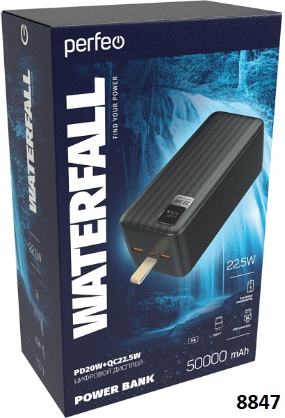 | 8847 | Источник питания Perfeo PowerBank WATERFALL 50000mAh/LED/QC/PD (PF_D0186) max 22.5W Чёрный | 2 470.00 руб. | | |